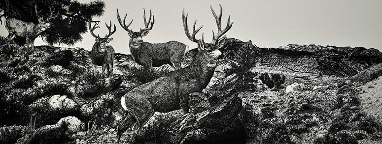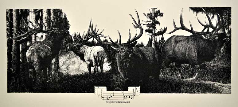 Rocky Mountain Quartet 9.5” x 21” Pen & Ink on Paper Original Not for Sale Available as Print |